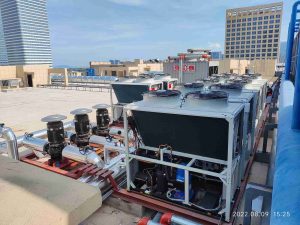 屋面设备多为集中摆放,设备之间、设备与屋面钢结构、管道之间容易形成共振,放大噪声强度;再加上海南盐雾腐蚀,设备连接件、管道支架容易锈蚀松动,进一步加剧振动和异响,形成“噪声越吵越厉害,越厉害越难修”的恶性循环。